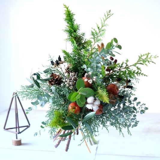 四角錐の形がめずらしい、花政オリジナルのツリーアレンジメントです。